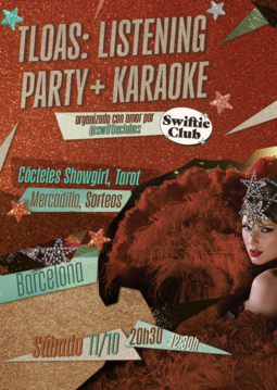 Se trata de un evento muy guay para celebrar el lanzamiento del esperado TS12: TLOAS, primero escucharemos el álbum en orden y en su totalidad y posteriormente tendremos una sesión de Karaoke donde podremos chillar todos los hits de la discografía de Taylor. Además disfrutaremos de sesiones de tarot, contaremos con un mercadillo de merch swiftie, sorteos entre las showgirls asistentes y más sorpresitas.
